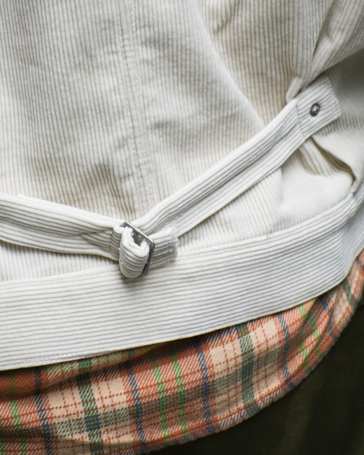 今回はモダール混紡の光沢とトロッとした柔らかみのあるコーデュロイ生地を採用しており、