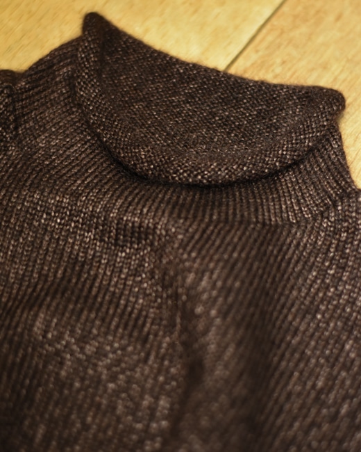あらかじめ折り返した仕様で編み込まれたネック部分が特徴で