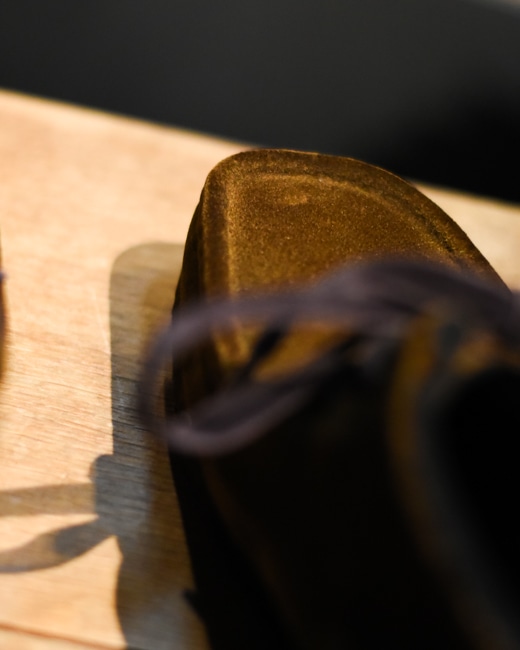 レザーシューズでこの技法を用いた加工を施しているのは見たことがない。