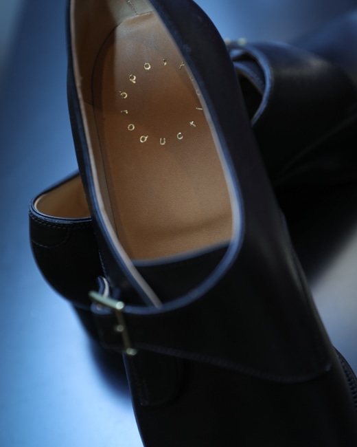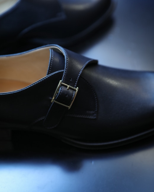 デザイナー曰く裾幅の細いパンツに合わせて頂きたいモンクストラップです。