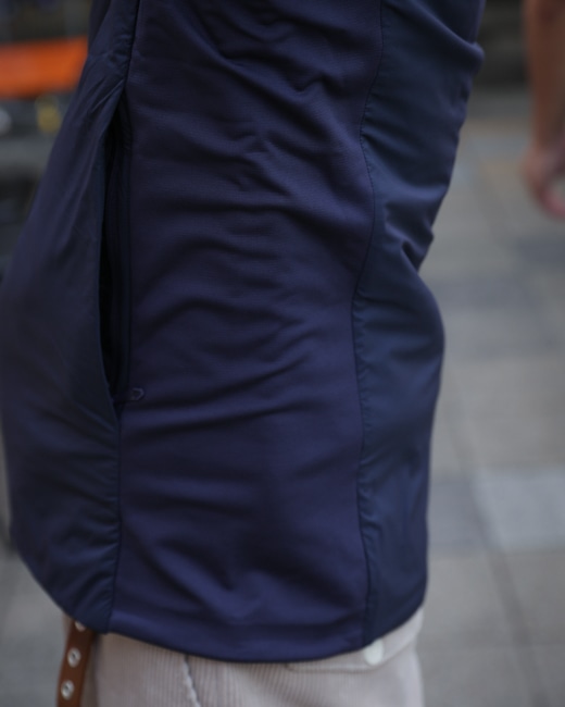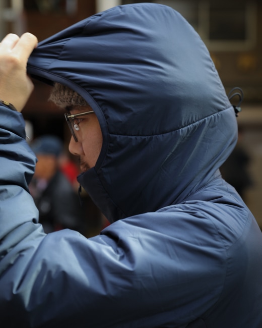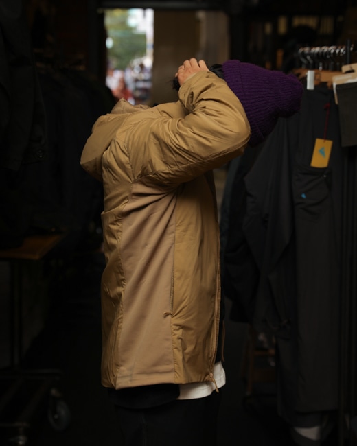 軽量で合成断熱性能のあるフーディはタウンユースはもちろん旅先のお供としても優秀。