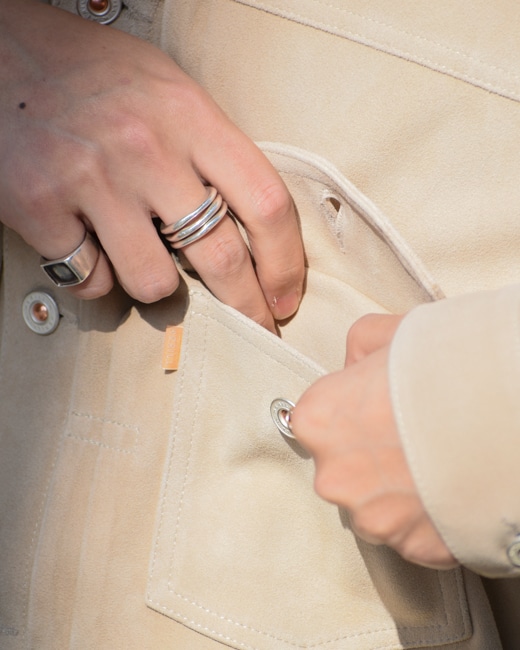 クラシックなディティールとモダンなムード漂うシルエットは一度是非お試しいただきたい一枚です。