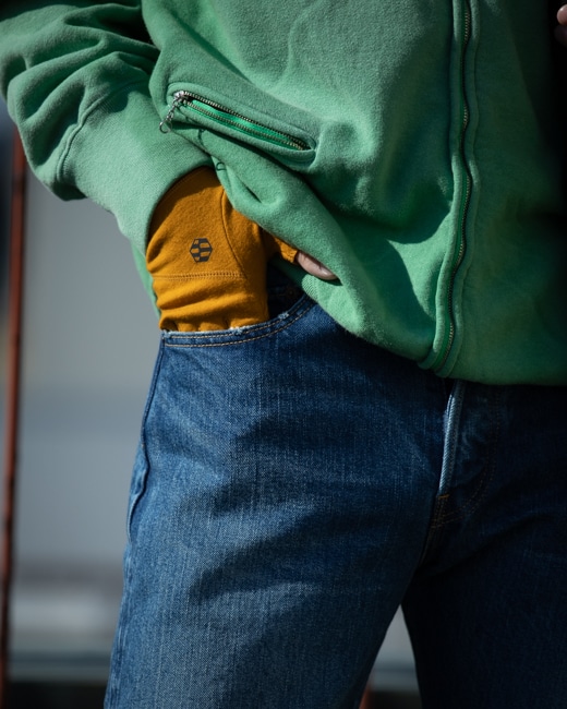 旧式力織機(シャトル織機)でセルビッチデニムに仕上げています。