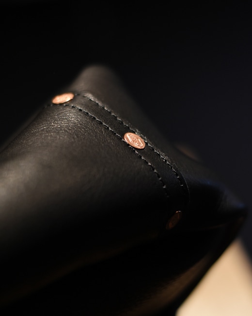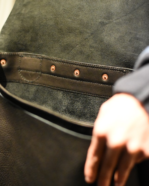 リベットや金具も一からオリジナルで製作され、使用されている牛革は素材そのものの良さを
