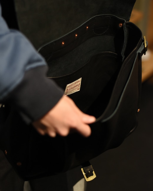 必要な機能美は的確に備え、無駄を極力省き製作されたレザー素材のメールバッグ。