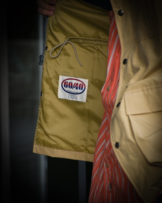 コットンを60%ナイロンを40%の割合のクラシックな防水素材。