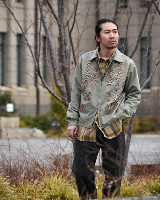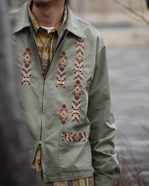 さらに目に飛び込んでくるオリジナルの民族調刺繍は群馬県桐生にて仕上げ、