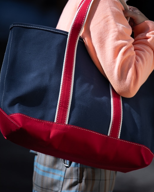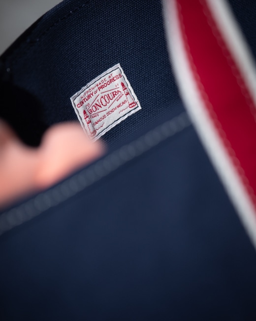 持ち手には肉厚なコットンテープをベースに、一つはBONCOURAを象徴する赤モールスキン、