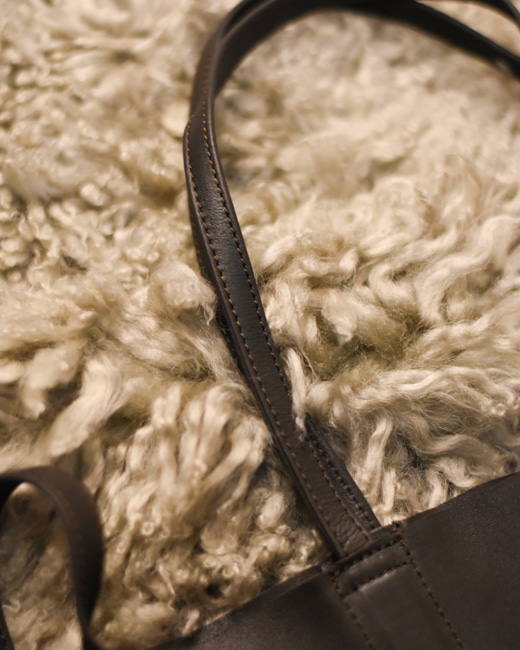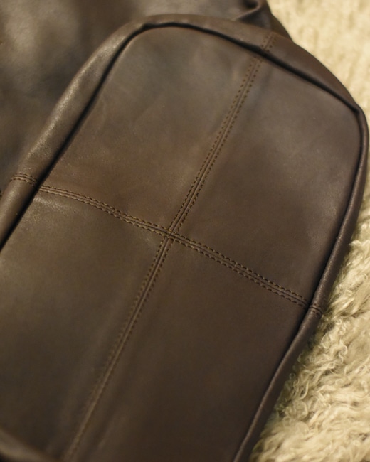 シープレザーやカウレザーに比べて繊維密度が高く、非常に軽くて丈夫、そして型崩れが起きにくい。