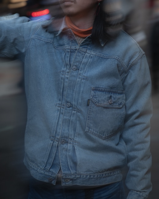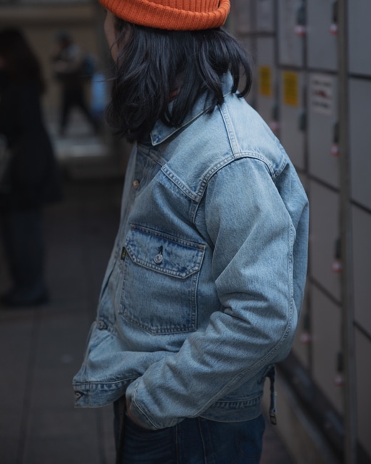 デザイナーである小林氏が所有する、日焼けしたGジャンからインスピレーションを受け、巧な加工により、