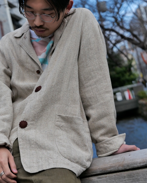 デザイナー様が所有されていたデッドストックファブリックを、今回の別注では特別に使用しています。