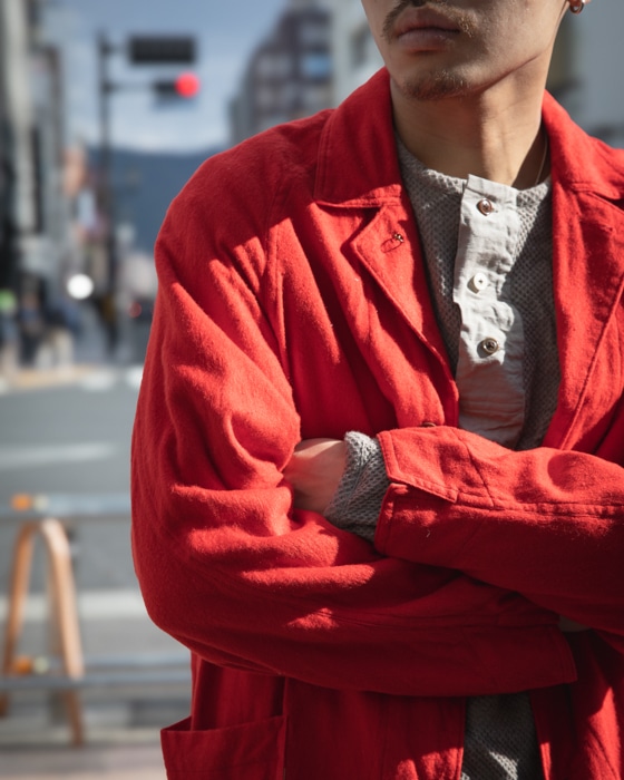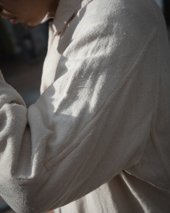 季節を問わず日常的に着回せるシャツジャケット型のアイテム。