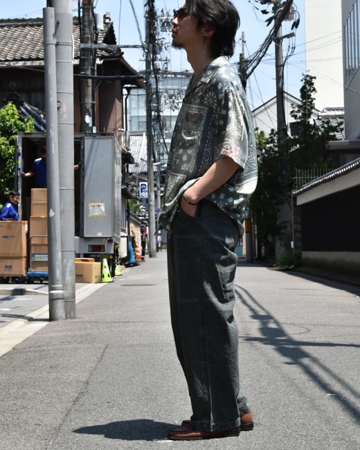 シルエットは、余白がありワタリから膝にかけてボリュームを持たせたワイドテーパード。