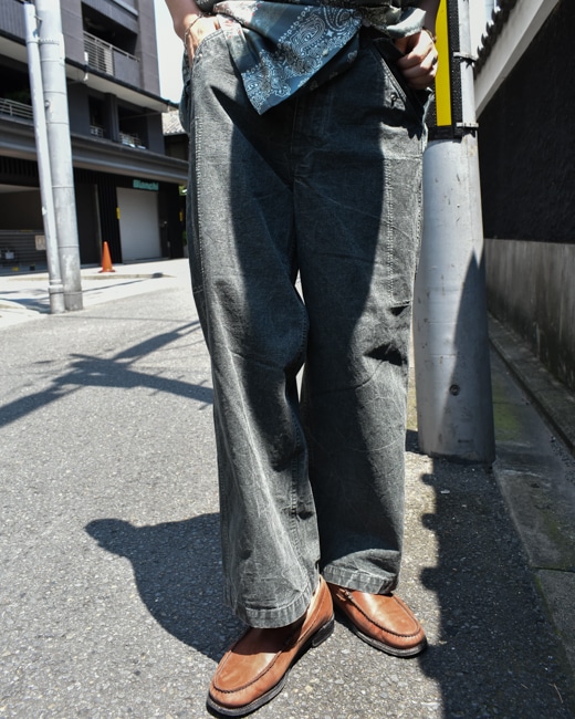 生地には特殊な加工を施しており、穿き込むほどにアタリやスレが浮かび上がり、まるでヴィンテージデニムのような経年変化も楽しめます。