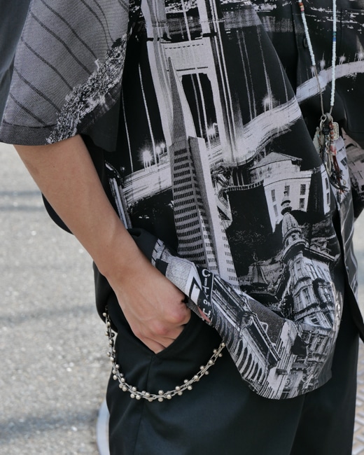 スタイリングのベースとなるのはSEVEN BY SEVEN(セブンバイセブン)の「Printed Souvenir Shirts」