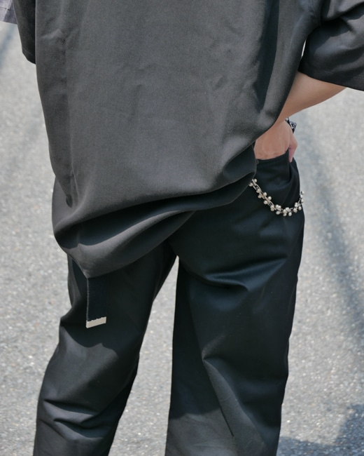 派手なディテールは無く洗練されたシルエットと光沢が程よくあるT/C素材はスラックスのようなコーディネートを引き締める役割も。