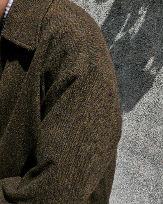 ミドルレングスのバランスが絶妙で、重厚な雰囲気を纏いながらも、裏地にはウールギャバジンを使用し、軽やかな袖通りを実現。