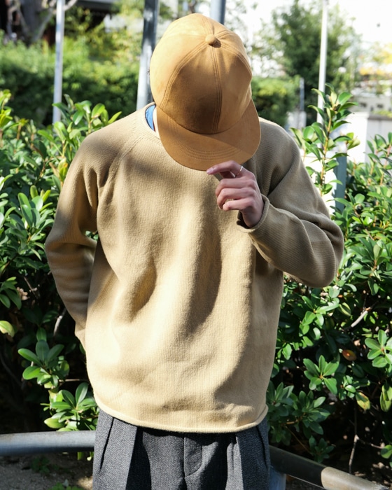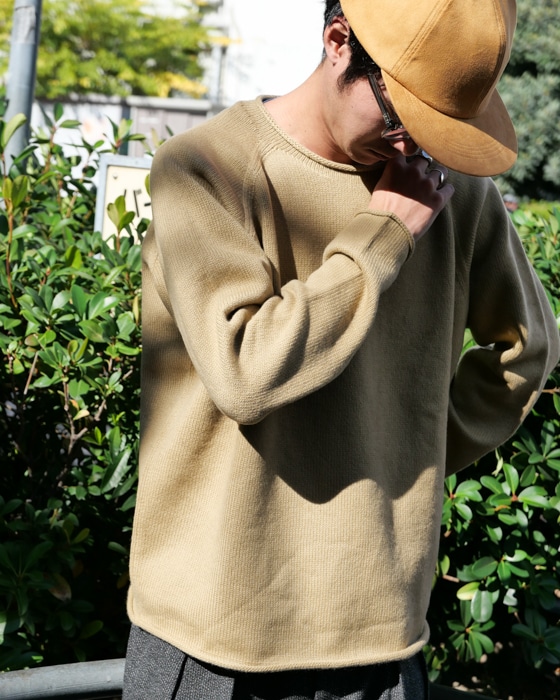 ラグランスリーブで、ニットでありながらスエットのような感覚も感じられ