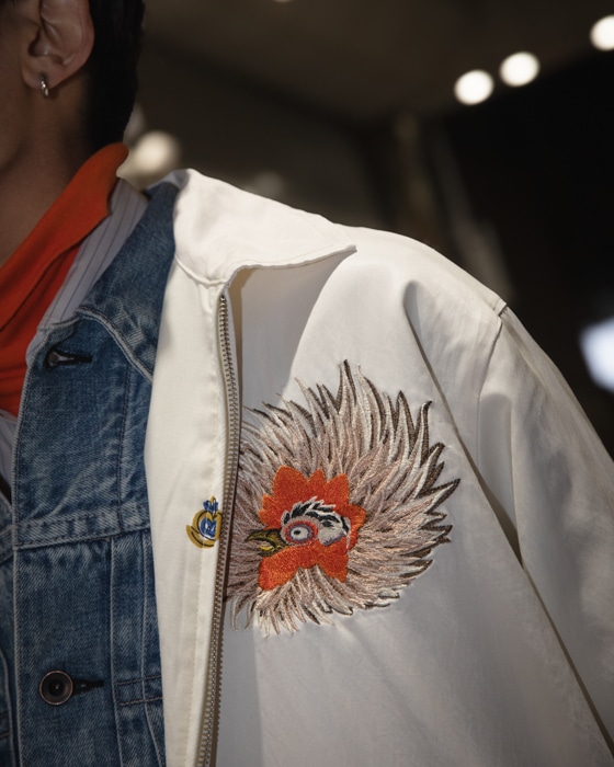 形はスカジャンからドリズラーへ、素材はレーヨンをベースに両面、異なる混紡素材を起用。