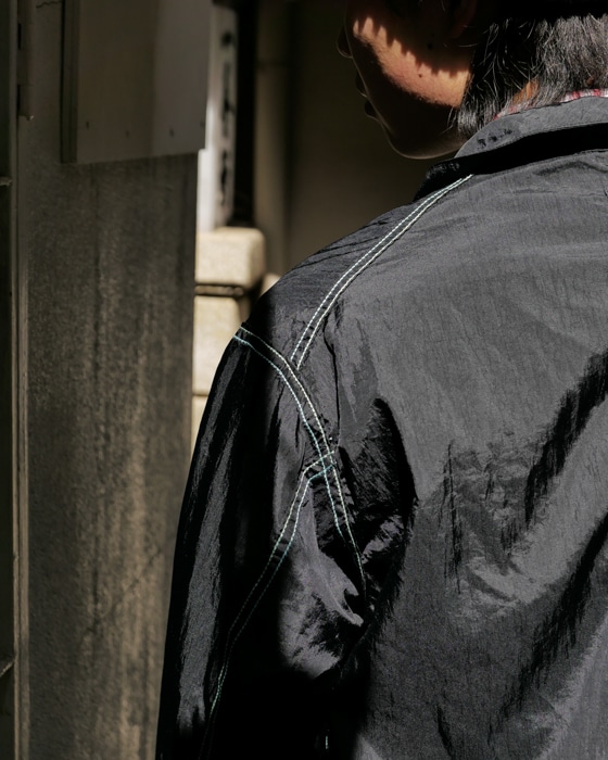 裏返しで着ちゃっても面白そうです。また、こういった化繊物にはあまりない綿をステッチに採用。
