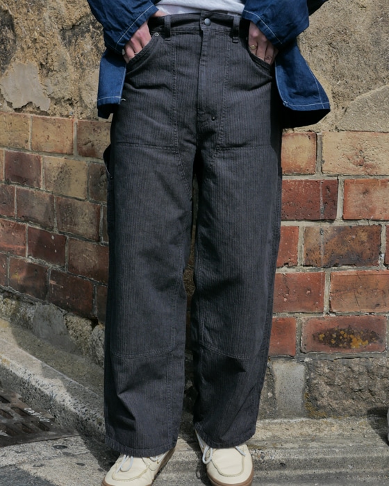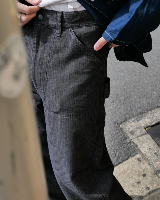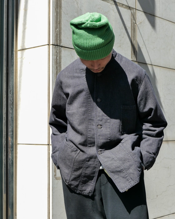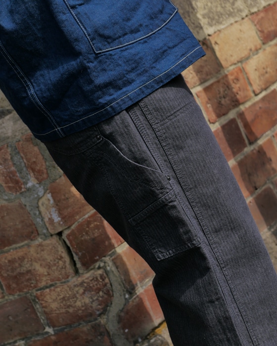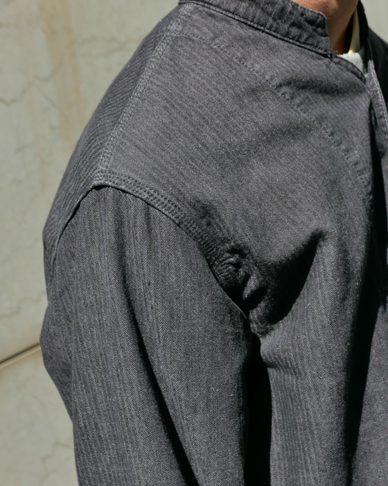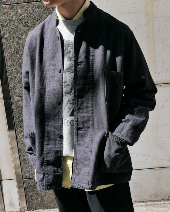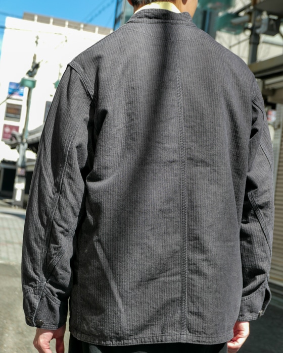 コットン×ヘンプでヘリンボーン組織なヒッコリーストライプカバーオール。