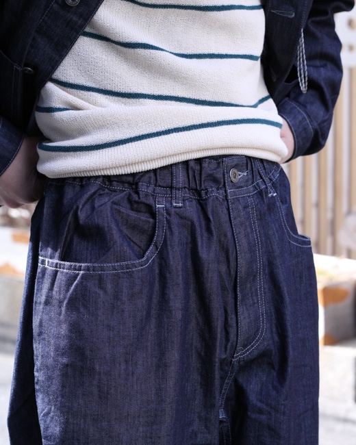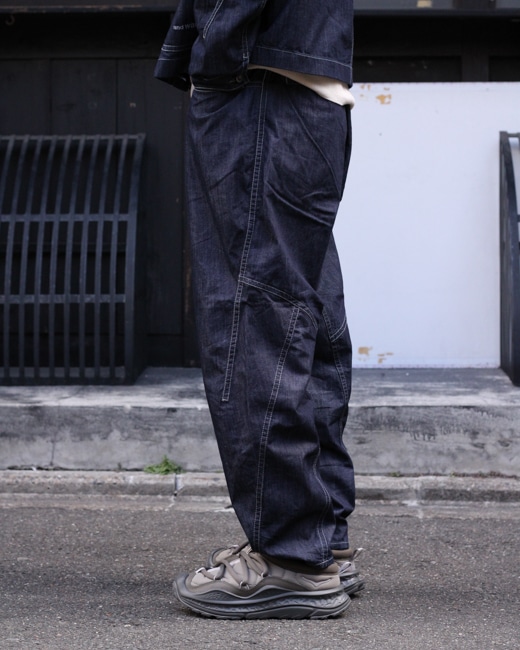 ワイドながらにテーパードがしっかりと効いていて合わせるシューズを選ばない汎用性の高いシルエットです。