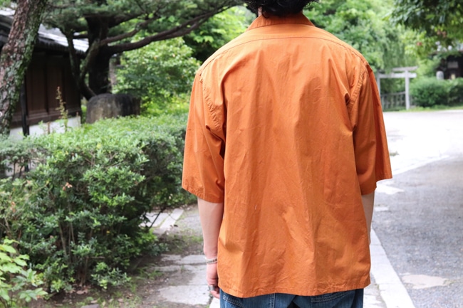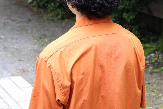 製品に洗い加工を行っているため縫製面のパッカリングや素材感が少し現れており、色落ちしたジーンズやレザーサンダルなど男前なアイテムとも相性がいいので夏場の羽織りとして合わせていただきたい一枚です。