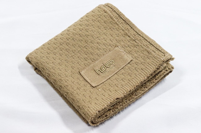 ブランドオリジナルの十文字刺し子生地を使用した正方形の手ぬぐい。