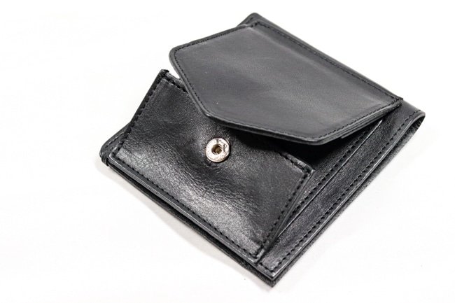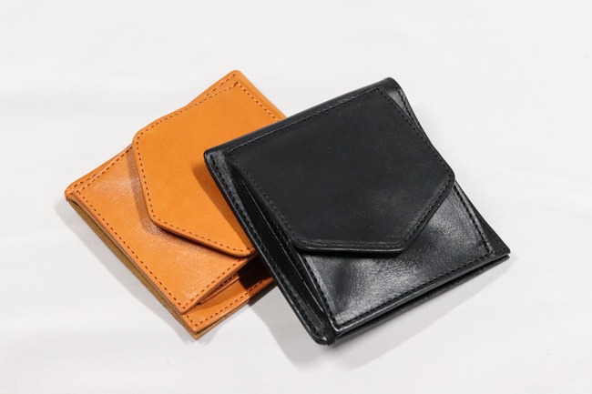 外付けのコインポケットとカードホルダーが実用的な配置でデザインとしても秀逸なコンパクトウォレット。