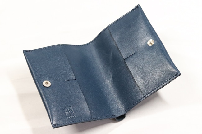 3つ折りタイプの小さな形ながら硬貨、紙幣、各種カード類も分けて収納でき、まとまりの良いデザインのウォレット。