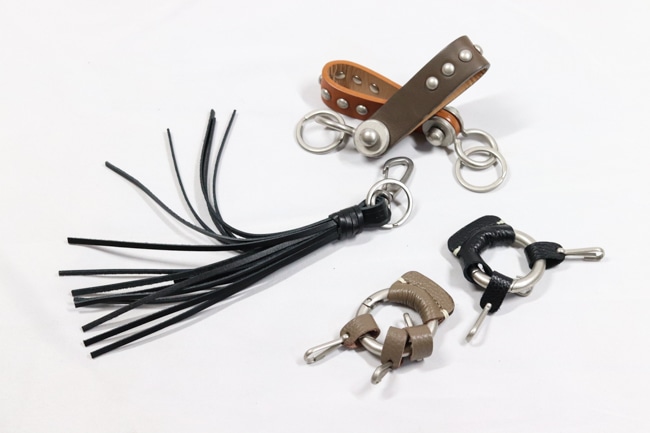 上質で柔らかいレザーのタッセルを束ねたキーリング。
