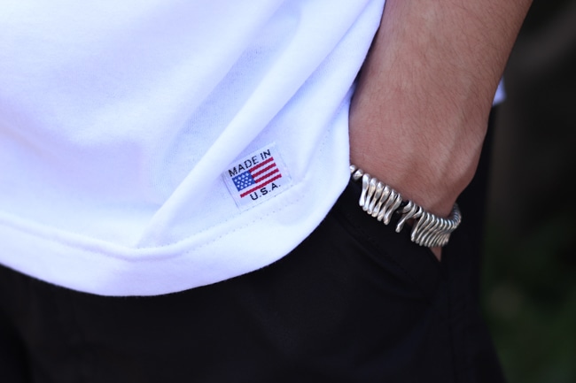 こちらはオリジナル USA BODY にプリントしたリンガーTシャツ。