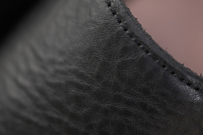 極力負荷を掛けないように丁寧にシュリンク加工した革で、程よくオイルが染み込んだソフトでナチュラルな風合いが魅力。