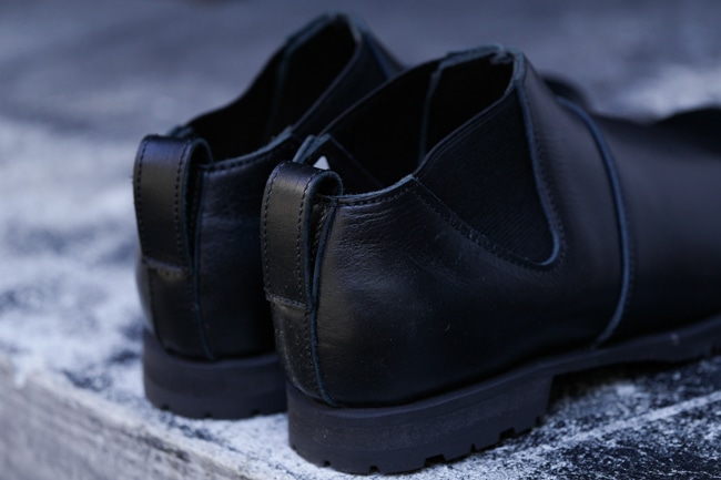 他のnakamuraの靴よりもコバの部分を強調させているのでワーク、アウトドアテイストも感じられる無骨なサイドゴアブーツ。