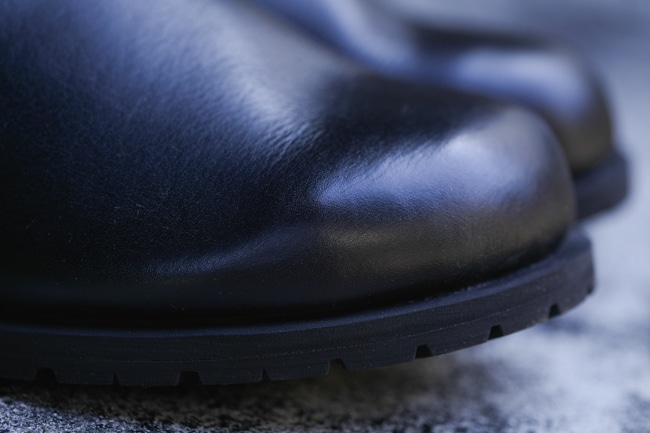 薄めのクレープソールを合わせて洗練された雰囲気に仕上げているが、こちらも日本人の足に合わせた木型と衝撃を吸収に優れたインソールのおかげで快適な履き心地を体感できる。