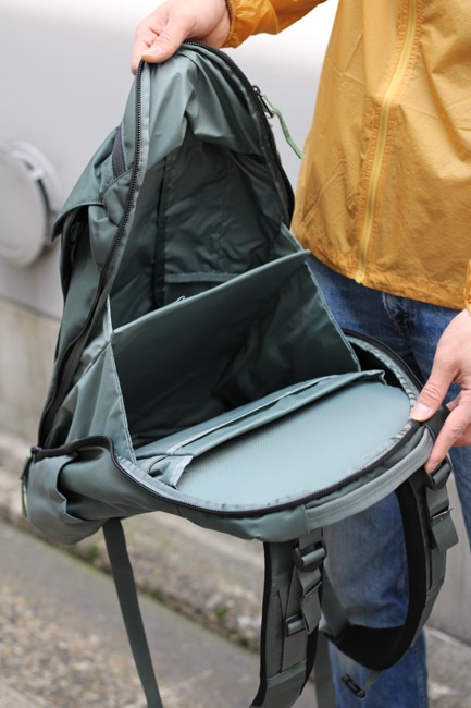 伸縮性のあるメッシュボトルポケットに、タブレットやPCを収納することのできるメインのポケット。