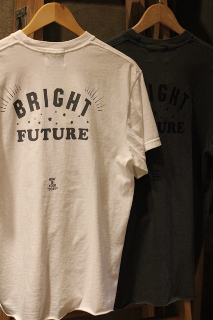 裾はカットオフ使用でバックプリントには”Bright Future”の文字。