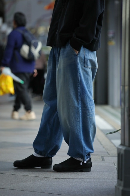 裾のドローコードを絞ってバルーンパンツのようなシルエットにすることも可能です。