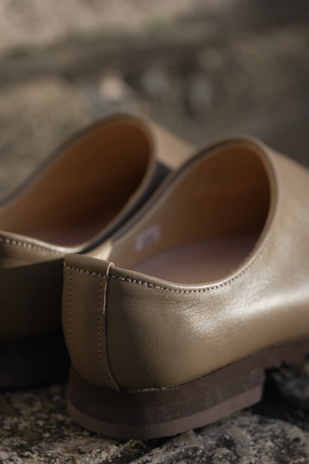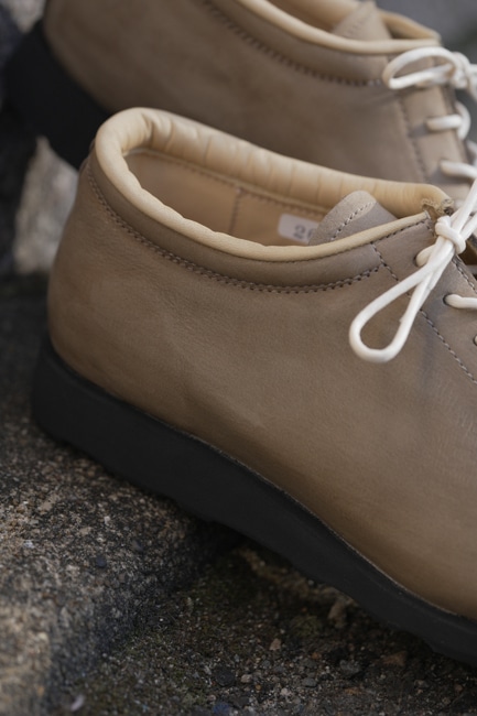 柔らかくもっちりとしたきめ細やかなエルクレザーをアッパーに、四つ穴アイレットのプレーントゥ。