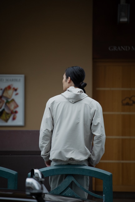 ハードシェルと違い、柔らかくしなやかな着心地なのでミドルレイヤーとしても着用可。