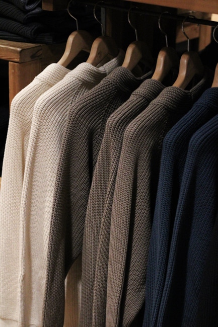 寒い時期のイメージの強いですが、素材や編み方で着用できるシーズンの幅が広がるニット。