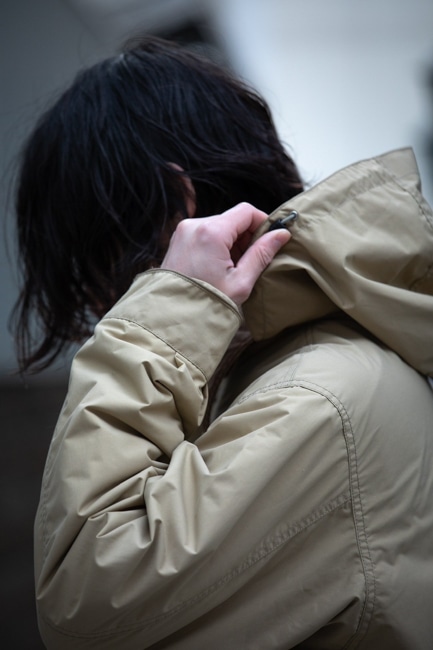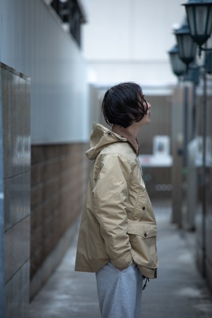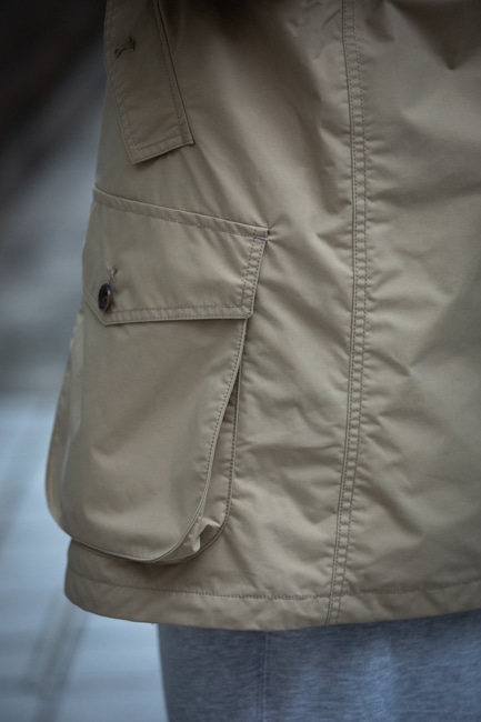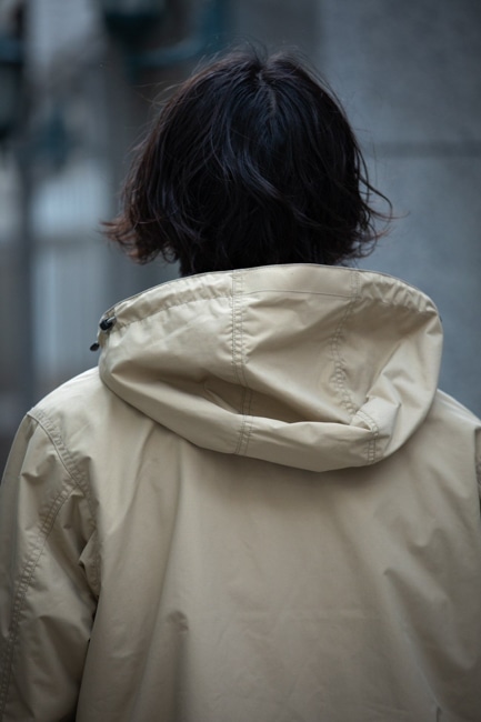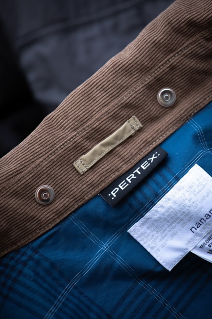 生地はオイルドでもワックスドコットンでもなく、防水性と透湿性に優れたPERTEX UNLIMITEDを使用。