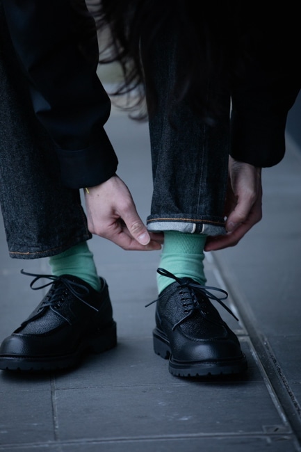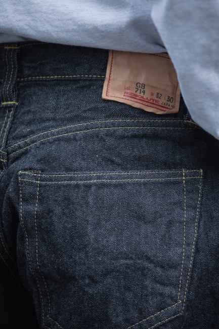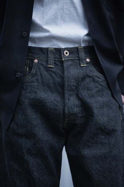 芯の白をしっかりと残したまま染色することによって、リゾルト初となるブラックに相当しい激しく濃淡の出る色落ちを楽しんでいただけるブラックデニムです。