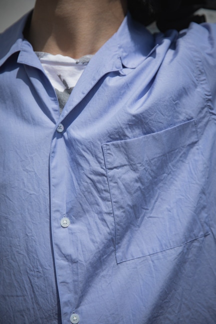 ゆったりとしたサイズ感が特徴的なオープンカラーシャツ。