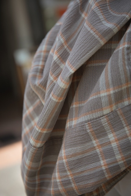 ちぢみ織りのような凹凸感のある生地感なので、汗ばむシーズンもベタつかずに快適に着ていただけます。