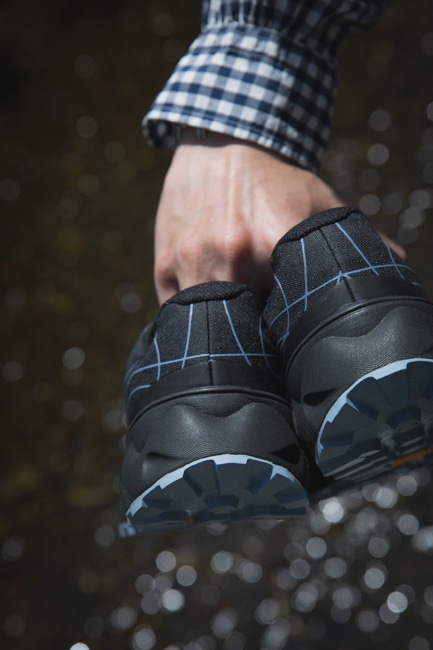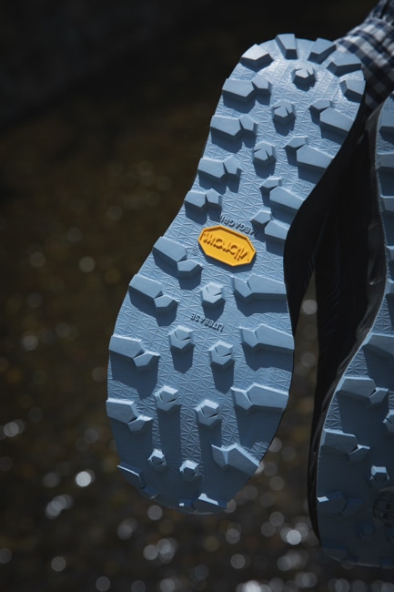 そして、VIBRAM Megagripのアウトソールが、滑りやすい濡れた岩場や不安定な砂利道など、あらゆる路面コンディションに対応します。
