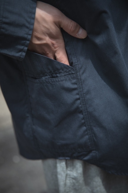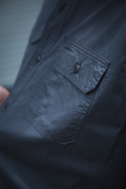 左右非対称の配されたツールポケットが唯一無二で、ワークシャツならではなディテールも抜かりなくブランドらしさの詰まった1枚。