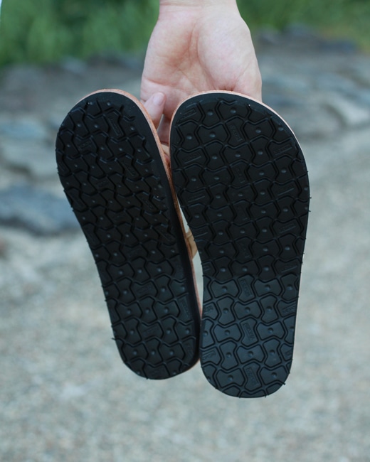 ビーサンだとこれまたラフすぎるのでここではレザーサンダルを。