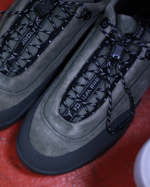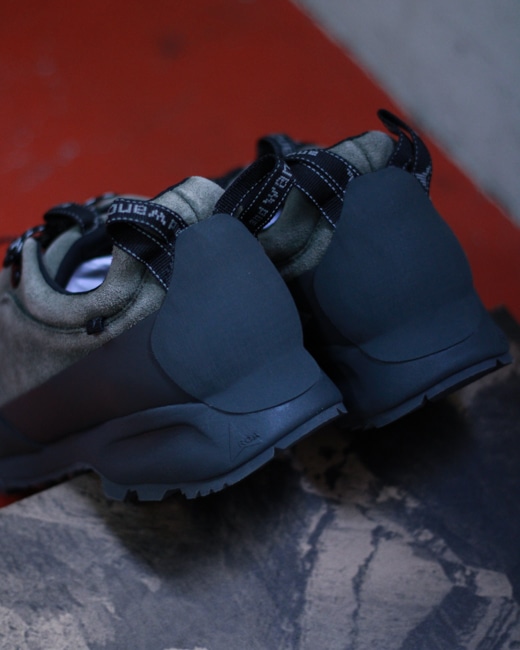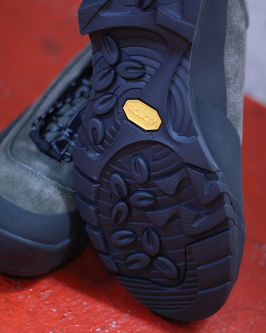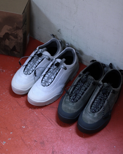 スタイリッシュな見た目ながらに、タウンユースだけに留まらず実際のフィールドでも履いていただける程のタフさや軽量性、無駄のないデザイン性が両者のブランドの特性が表現された1足になっています。