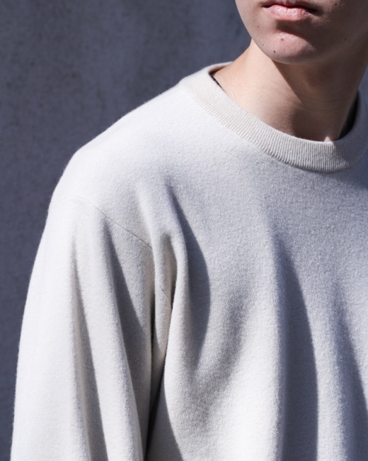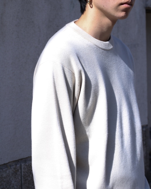 このSunshine Cashmereはやや起毛感とハリ、コシを備えた特有のタッチが他に無い唯一無二なニットです。